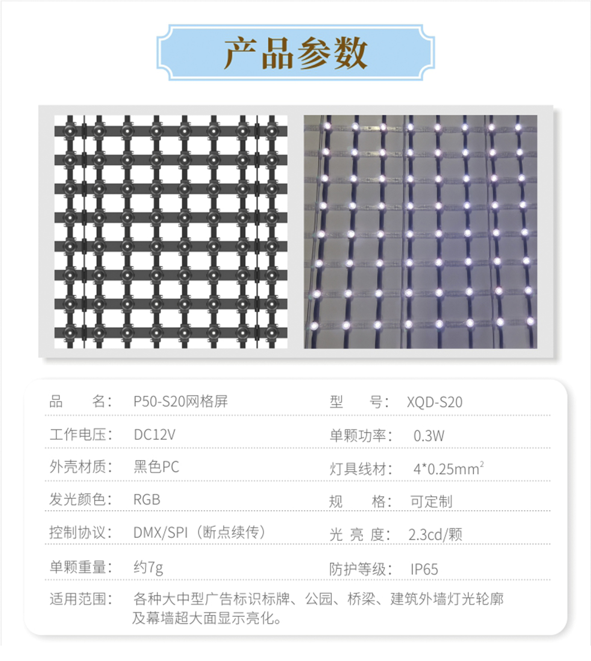 產(chǎn)品特點(diǎn): 1.采用正面全封灌膠結(jié)構(gòu),散熱性能好,防護(hù)等級(jí)高; 2.采用戶外專(zhuān)用防水燈珠,色彩純正,性能穩(wěn)定; 3.防塵抗UV材料面罩,體積小,外觀精致,室內(nèi)外通用; 4.可適用于大中型廣告標(biāo)示標(biāo)牌、建筑物立面超大面積顯示, 輪廓溝邊,內(nèi)外表面裝飾亮化; 安裝方式: 1.卡鋁槽 2.裝鋼絲卡扣3.打螺絲固定