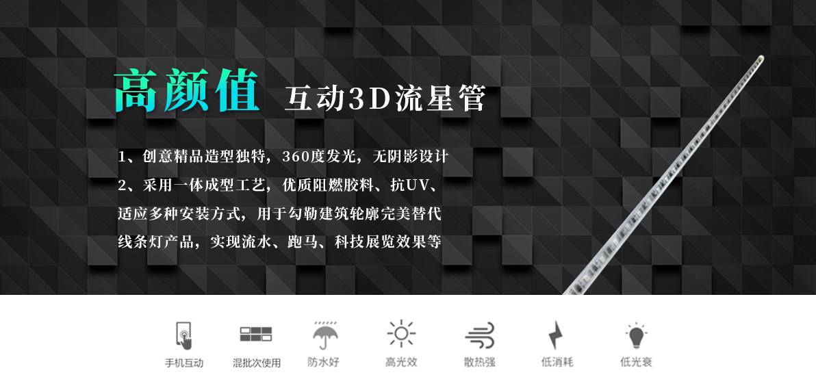 產(chǎn)品特點(diǎn): 1.采用一體成型工藝,防護(hù)等級(jí)高; 2.優(yōu)質(zhì)阻然膠料,抗 UV、抗鹽霧; 3.適應(yīng)多種安裝方式,安裝簡(jiǎn)單可靠; 4.常用于勾勒建筑輪廓,完美替代線(xiàn)條燈產(chǎn)品,實(shí)現(xiàn)流水、跑馬。