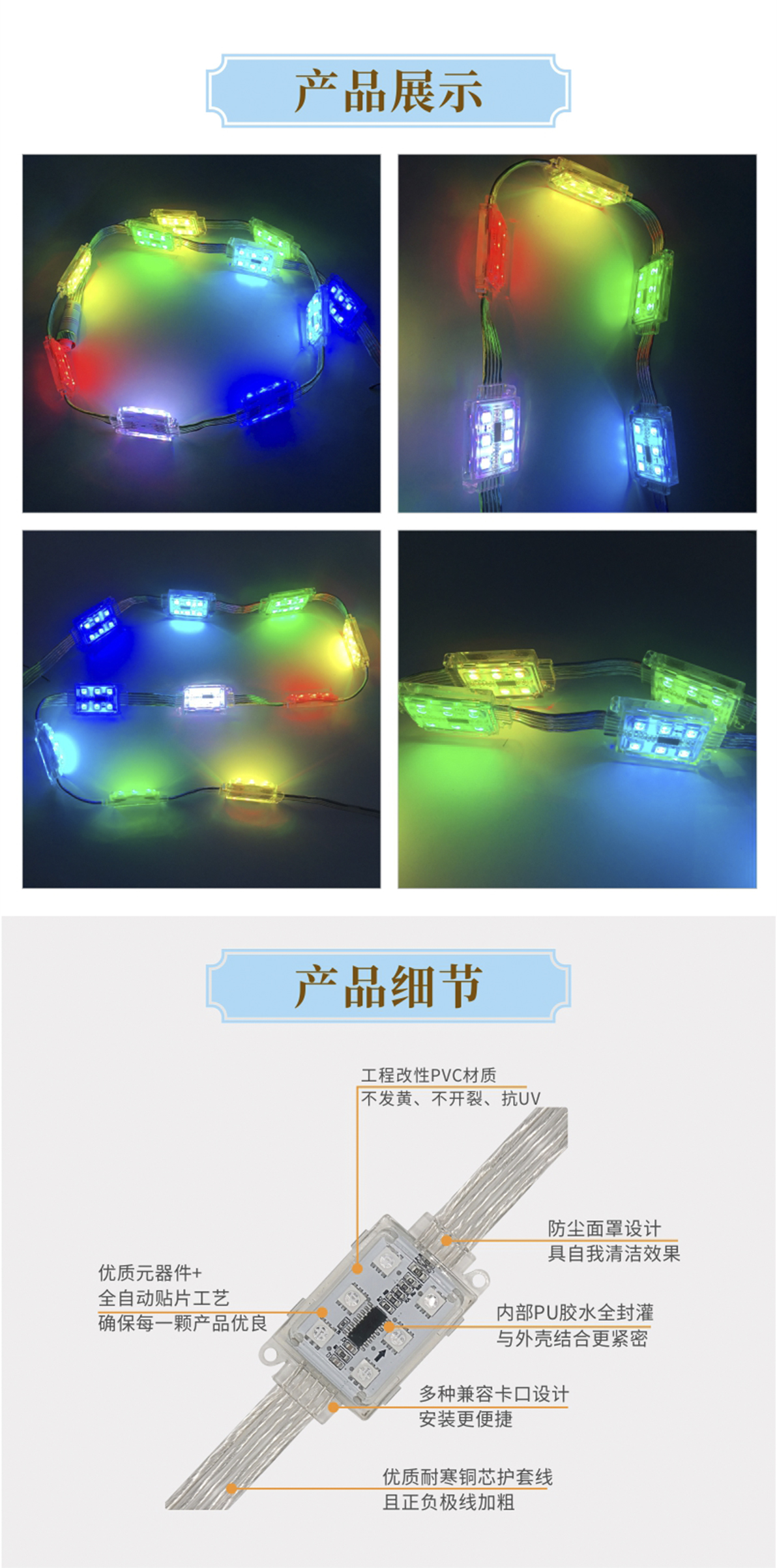 LED12點光源12mm全彩輪廓燈藝術(shù)造型燈全彩外露燈串穿孔燈