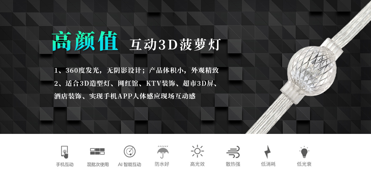 產(chǎn)品用途: 1.360 度發(fā)光,無陰影設(shè)計(jì); 2.產(chǎn)品外觀別致,可定制多種造型; 3.優(yōu)質(zhì)阻然膠料,抗 UV,耐候; 4.適用 3D 造型燈、網(wǎng)紅館、KTV 裝飾、超市 3D 屏、 酒店裝飾、APP 點(diǎn)陣 3D 互動(dòng)屏 5.可配合專業(yè)互動(dòng)系統(tǒng)實(shí)現(xiàn)手機(jī) APP 互動(dòng)、聲光聯(lián)動(dòng)、 人體感應(yīng)互動(dòng);