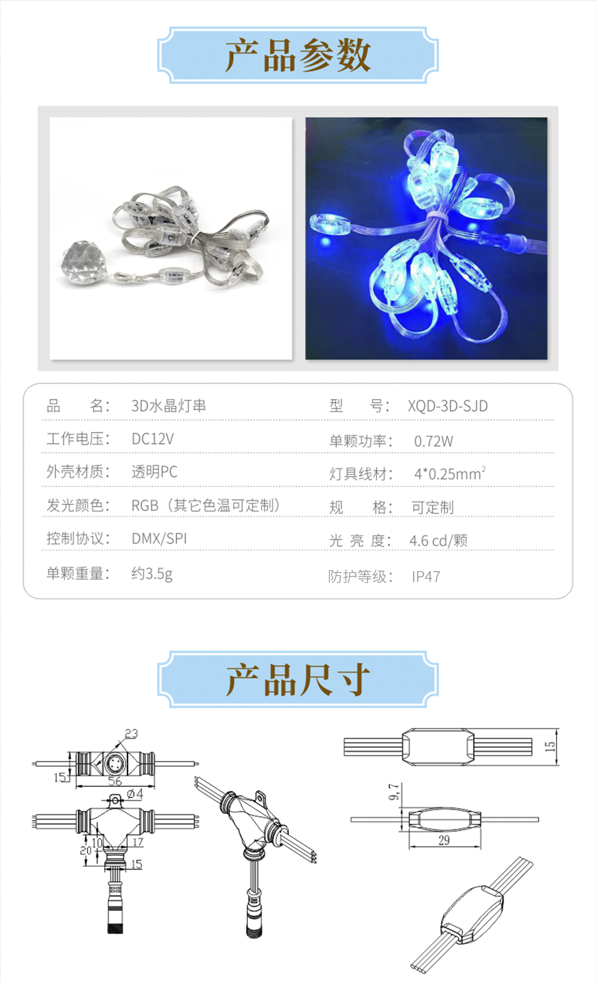 產(chǎn)品用途: 1.360 度發(fā)光,無(wú)陰影設(shè)計(jì); 2.產(chǎn)品外觀別致,可定制多種造型; 3.優(yōu)質(zhì)阻然膠料,抗 UV,耐候; 4.適用 3D 造型燈、網(wǎng)紅館、KTV 裝飾、超市 3D 屏、 酒店裝飾、APP 點(diǎn)陣 3D 互動(dòng)屏 5.可配合專業(yè)互動(dòng)系統(tǒng)實(shí)現(xiàn)手機(jī) APP 互動(dòng)、聲光聯(lián)動(dòng)、 人體感應(yīng)互動(dòng); 安裝方式: 1.打孔懸掛 2.配 T 型端子