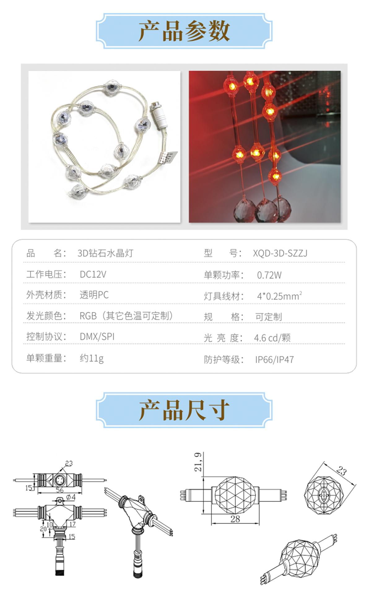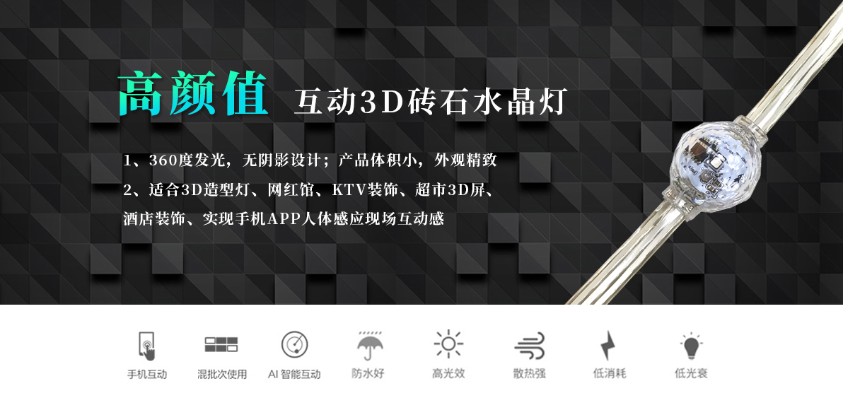 產(chǎn)品用途: 1.360 度發(fā)光,無(wú)陰影設(shè)計(jì); 2.產(chǎn)品外觀別致,可定制多種造型; 3.優(yōu)質(zhì)阻然膠料,抗 UV,耐候; 4.適用 3D 造型燈、網(wǎng)紅館、KTV 裝飾、超市 3D 屏、 酒店裝飾、APP 點(diǎn)陣 3D 互動(dòng)屏 5.可配合專業(yè)互動(dòng)系統(tǒng)實(shí)現(xiàn)手機(jī) APP 互動(dòng)、聲光聯(lián)動(dòng)、 人體感應(yīng)互動(dòng); 安裝方式: 1.打孔懸掛 2.配T型端子